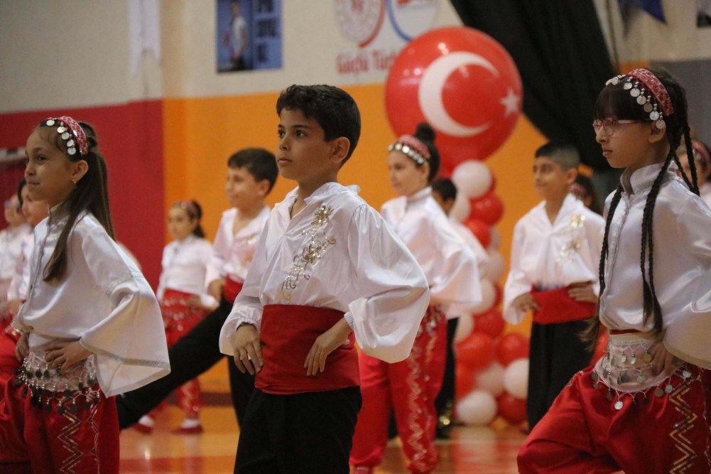 Tören, öğrencilerin sergilediği dans ve halk oyunları gösterileriyle devam etti. Ana sınıfı öğrencilerinin, Haluk Levent’in “Seni Unutmak Mümkün mü?” şarkısı eşliğinde dev Atatürk posterini selamlaması izleyicilerden büyük alkış aldı.