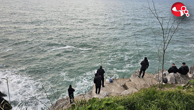 Zonguldak’ta hafta sonunu değerlendirmek isteyen amatör balıkçılar, Fener mevkiindeki falezlerde olta attı.