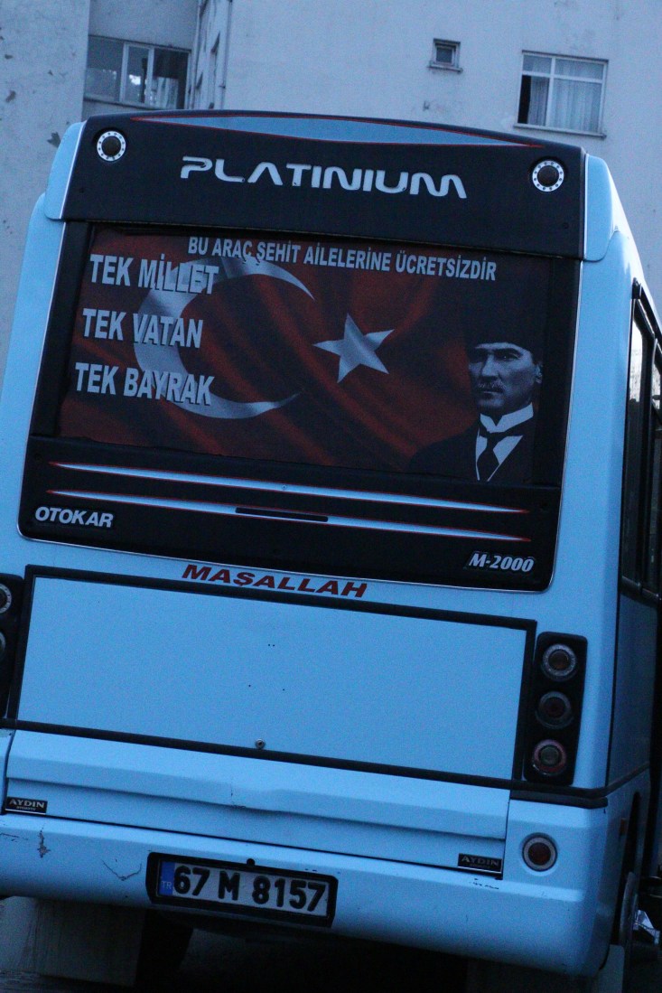 şehit ailelerinden ücret almama kararı verdi. Minibüslerinin arkasına 'Tek