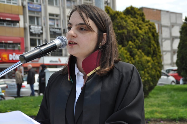 Avukatların yargının kurucu unsurları olduklarına dikkat çeken Begüm Soyarslan, “Hukukun emekçileriyiz. Toplumun adalete açılan kapısıyız. Halkın yargıdaki gücüyüz. “HERKES İÇİN ADALET!” diyenler bizleriz.