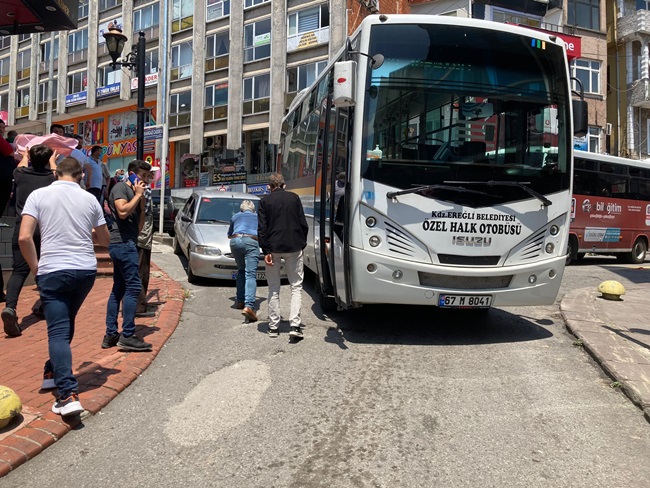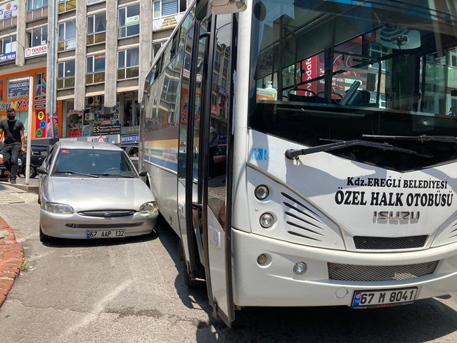 Kaza, Orhanlar Mahallesi Süleyman Seba Sokak üzerinde meydana geldi. Alınan bilgilere göre Orta Cami istikametinden gelen 67 AAP 132 plakalı otomobil ile 67 M 8041 plakalı halk otobüsü girdikleri dar yolda çarpıştı. Kazada yaralanan olmazken kazadan dolayı şoka giren kadın araçtan bebeği ile birlikte indirilerek sakinleşmesi için iş yerine alındı. Raporların tutulması ile birlikte araçların yoldan kaldırılması ile sıkışan trafik yeniden açıldı.