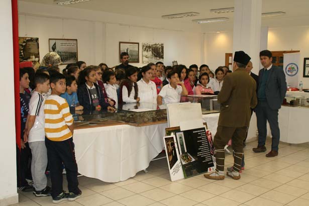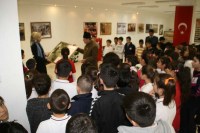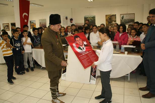 Eğitimci Turgut Kaçmaz, Atatürk Kültür Merkezi'nde açtığı resim ve materyal sergisinde bugüne kadar kırk civarında okuldan öğrenci gruplarına babası Gazi Hüseyin Kaçmaz'ın anılarını anlattı.