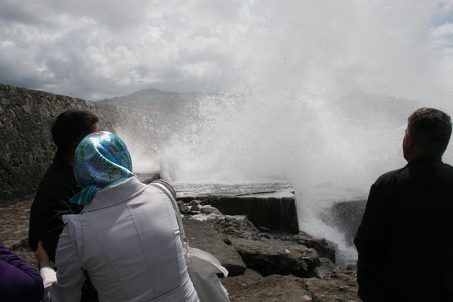 Hava sıcaklıklarının düşmesi ile gelen yağışlarla birlikte Karadeniz’de dev dalgalar oluştu. Vatandaşlar, dalgaların kıyıları vurarak yaklaşık 10 metre boyundaki mendireği aşmasını seyretmek için limana akın etti. Yaz ortasında adeta kış mevsimini andıran manzarayı seyretmek için liman arkasına koşan vatandaşlar, cep telefonuyla Karadeniz’in hırçın dalgalarını görüntülemeye çalıştı. Bazı vatandaşların dalgaları seyrederken ıslanması ve kaçması, renkli görüntülere sahne oldu.