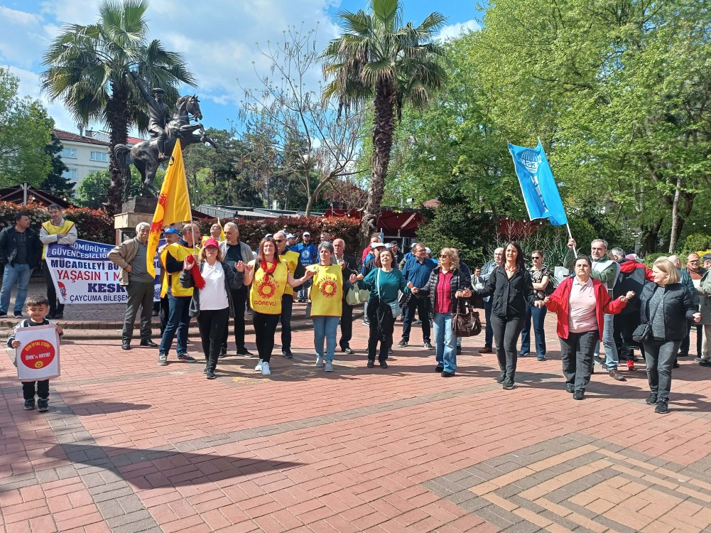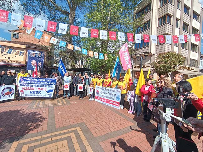 Bizler emeğin sömürülmediği; %1’in değil %99’un mutlu yaşadığı; sendikal hak ve özgürlüklerin, örgütlenmenin, hak arama yollarının açık olduğu; grev hakkının engellenmediği, kullanıldığında da yasaklanmadığı; herkesin güvenceli, kadrolu çalıştığı bir işinin ve insanca yaşamaya yetecek bir ücretinin olduğu; KHK ve fiili OHAL rejimine son verildiği; ekonomik krizlerin, salgınların, depremlerin, afetlerin faturasının halklarımıza ve emekçilere kesilmediği; kimsenin kimliğinden, inancından, cinsiyetinden dolayı ikinci sınıf yurttaş muamelesi görmediği; kadınlara yönelik şiddet, taciz ve tecavüzün son bulduğu, toplumsal cinsiyet eşitsizliğinin ortadan kaldırıldığı; eşit yurttaşlığın, barış ve kardeşliğin hâkim olduğu; düşünce ve ifade özgürlüğünün suç olarak görülmediği ve cezalandırılmadığı; gündüzlerinde sömürülmeyen, gecelerinde aç yatılmayan; emeğin, eşitliğin, özgürlüğün, demokrasinin, barışın, laikliğin hâkim olduğu bir gelecek ve ülke için mücadeleye devam edeceğiz. Biliyoruz ki, böyle bir dünya ve ülke mümkündür. Emekçiler olarak, işçi sınıfı olarak, kadınlar, gençler olarak özgürlük meşalesini yakıyoruz, yeni bir başlangıç için aydınlığa koşuyoruz. Kapitalist yıkıma, işsizliğe, yoksulluğa karşı birleşeceğiz, bu düzeni değiştireceğiz! Yaşasın 1 Mayıs!”