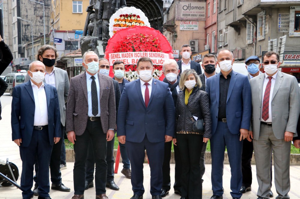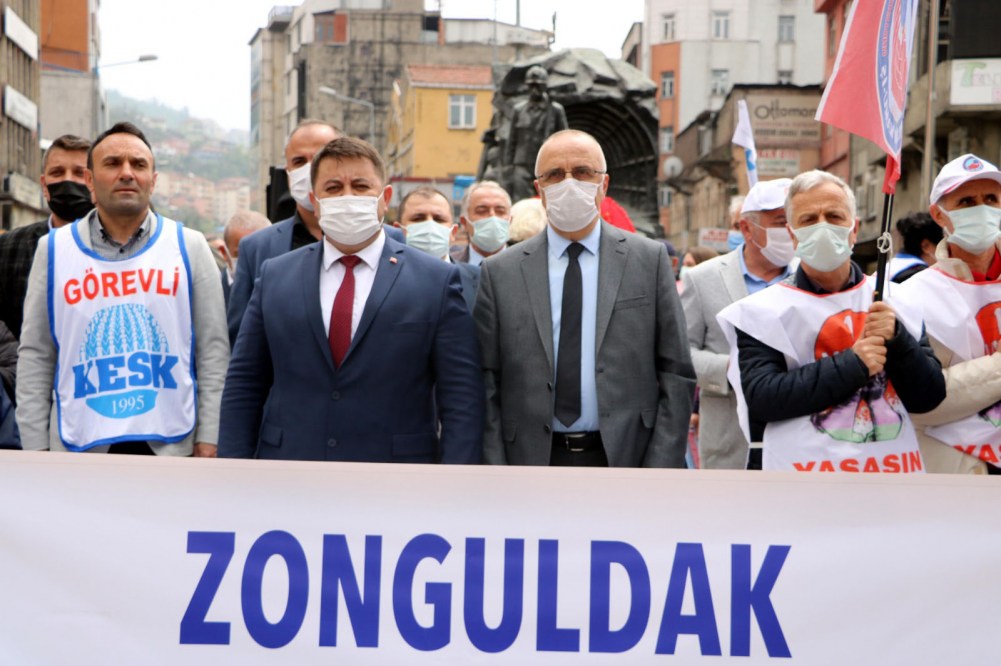 Zonguldak'ta 1 Mayıs İşçi ve Emekçi Bayramı- Uluslararası Birlik, Mücadele ve Dayanışma Günü kutlandı. Koronavirüs tedbirleri doğrultusunda düzenlenen törende konuşma yapan Genel Maden İşçileri Sendikası Başkanı Hakan Yeşil, “Dünya bugüne geldiyse emekçilerin omuzlarında yükselerek gelmiştir. Salgın koşullarında da dünyayı işler halde tutan yine emekçilerdir. Emekçilerin yok sayıldığı, haklarının gasp edilmeye çalışıldığı, güvencesizliğe, işsizliğe ve sefalete mahkûm edildiği bir dünyada ne salgınla mücadele edilebilir ne de hayat sürdürülebilir” ifadelerine yer verdi…