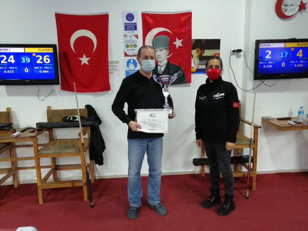 Zonguldak’ın Ereğli İlçesinde düzenlenen, “10 Kasım Atatürk’ü Anma Özel 3 Bant Bilardo Turnuvası”nda, İzzet Özdemir şampiyonluğa ulaştı.