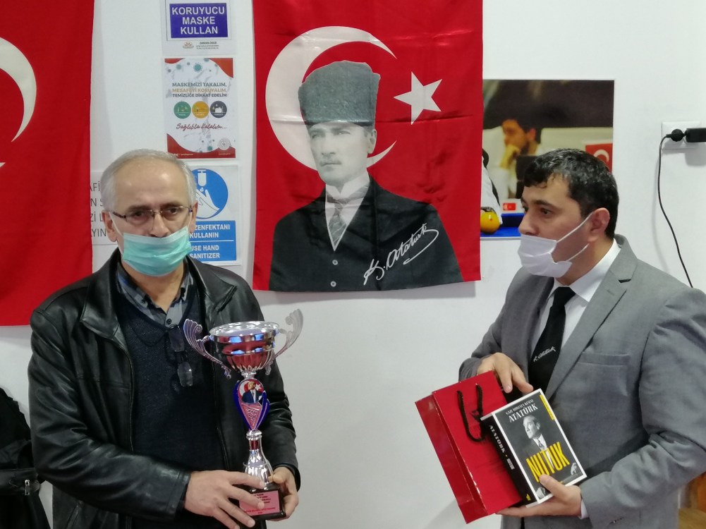 Arslan, Turnuva Şampiyonu İzzet Özdemir’e kupasının yanı sıra, ADD olarak ‘Nutuk’, başarı belgesi ile ADD Rozeti hediye etti.