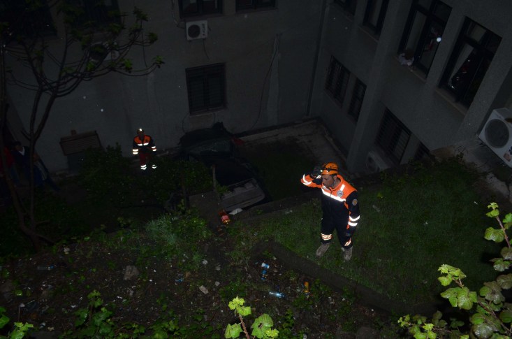 yükseklikten Zonguldak Adliye Lojmanlarının arka tarafına uçtu. Yol kenarındaki