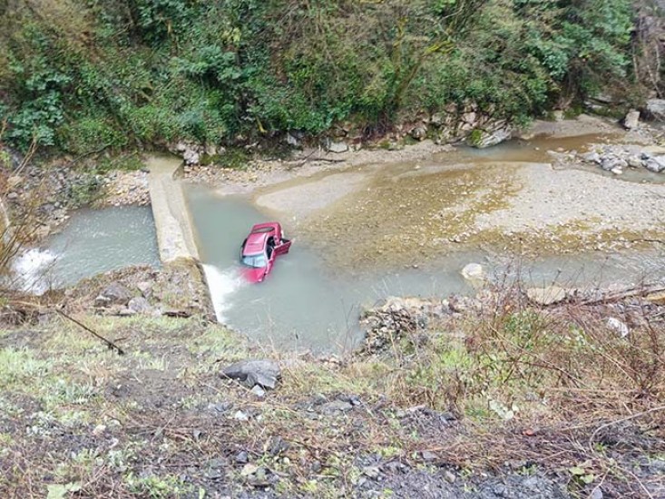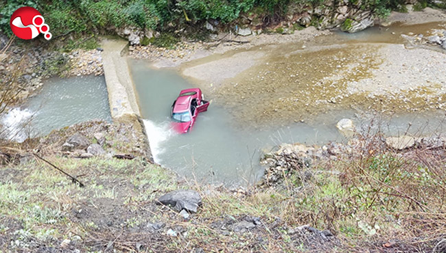 Zonguldak’ta kontrolden çıkan bir otomobil 10 metre yükseklikten dereye uçtu. Sürücü sıkıştığı yerden ekipler ve vatandaşların yardımı ile kurtarıldı.