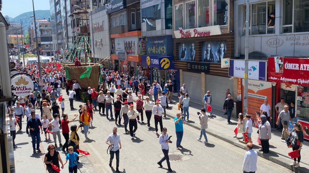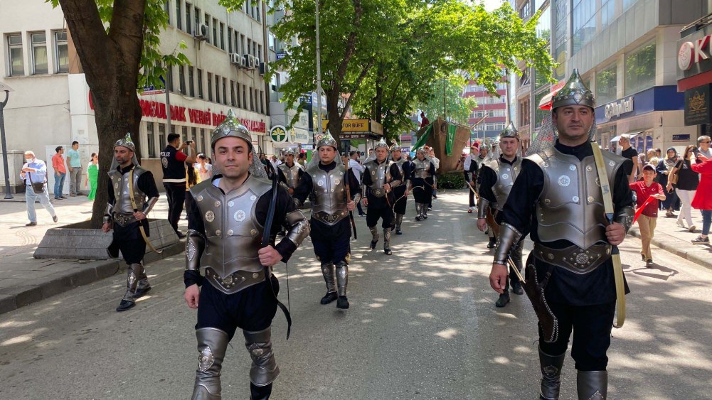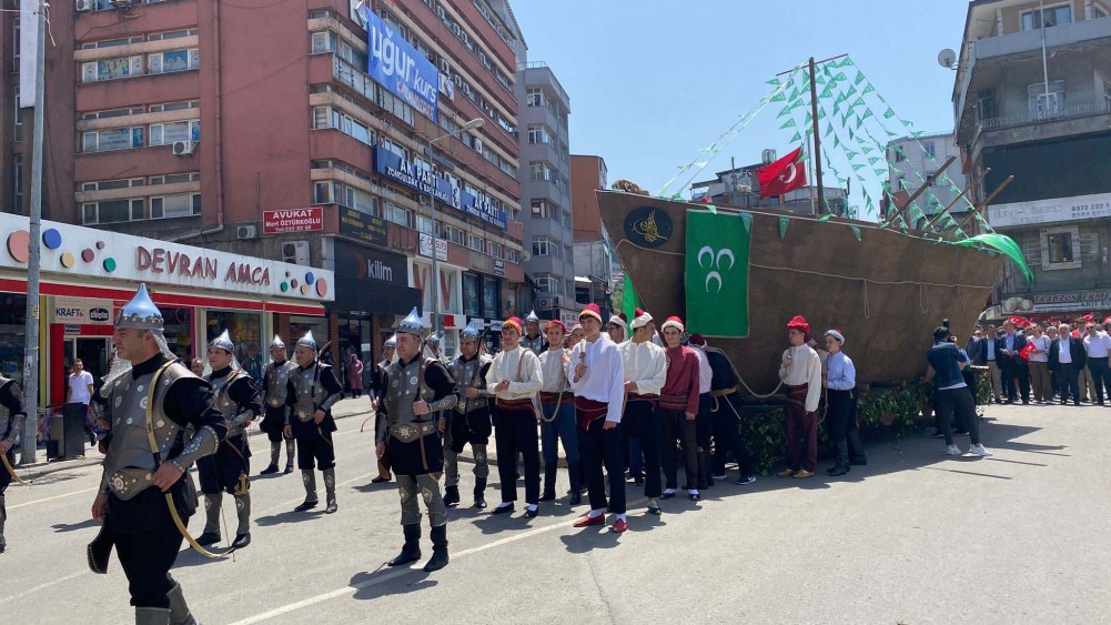 Zonguldak’ta düzenlenen İstanbul'un fethinin 569. yıl dönümü etkinliklerinde 10 metre uzunluğundaki gemi karadan yürütüldü.