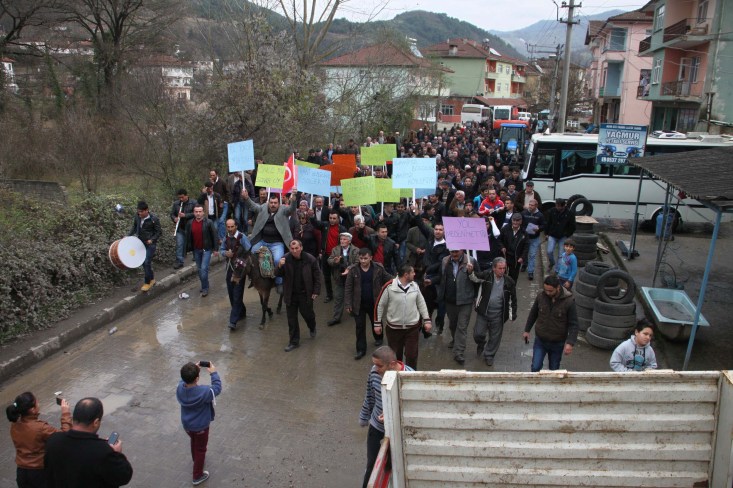 Çaylıoğlu köy merkezinde toplanan köylüler, at, katır ve eşeklerin üzerine 'hayvan yolu değil, insan yolu istiyoruz' yazıları ile toplandı. Köylü kadınlar başta olmak üzere köy gençleri de ellerinde 'Yol yoksa oy da yok', 'Artık söz değil, yol istiyoruz', Halk burada, siyasetçiler nerede', 'ne metro, ne tramvay, sadece yol istiyoruz', 'bu yüzyılda bu yol bize revamı' 'bu yolu hangi lobi engelliyor' yazılı dövizler taşıdı.