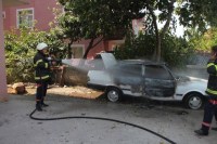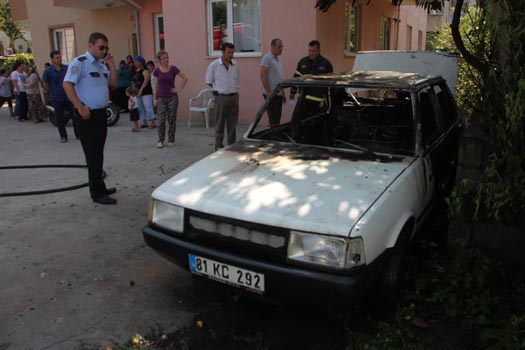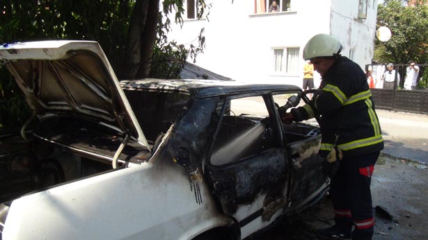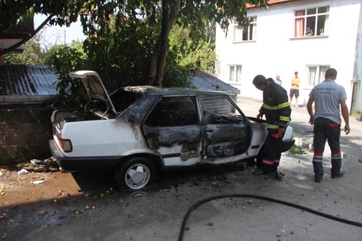 ekiplerinin müdahale ettiği otomobil tamamen yandı. Araç sahibinin akrabası olan