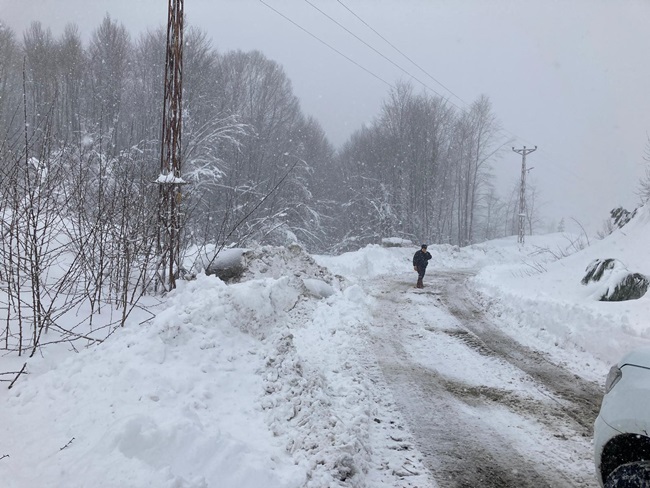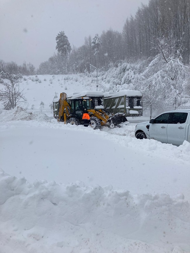 Belediye, yolu sürekli açık tutmak için yol güzergahına iş makinesi konuşlandırdı.