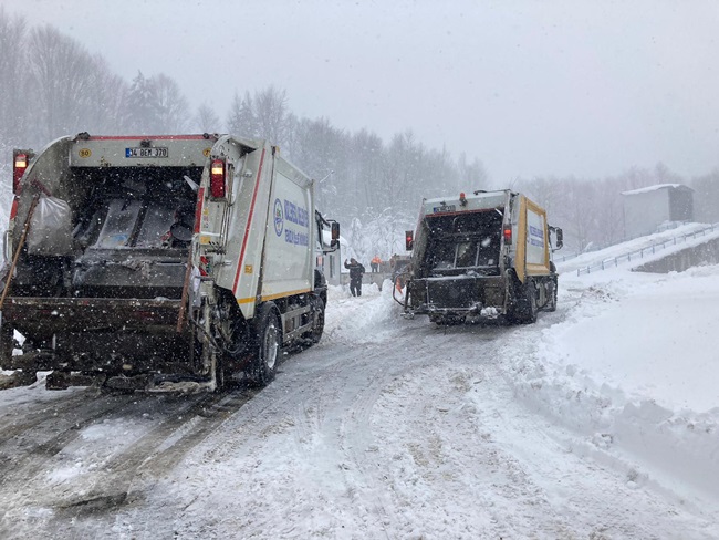 Yüksek kesimlerde yoğun kar yağışının devam ettiği Ereğli’de, Temizlik İşleri Müdürlüğü ekipleri tarafından günlük olarak 110 ton katı atık çöp kamyonları ile toplanıyor. Kar kalınlığının 50 cm.’i aştığı Soğanlı rampasında bulunan Katı Atık Terfi İstasyonu’na, kent merkezinden toplanan atıklar kamyonlar ile taşınıyor.