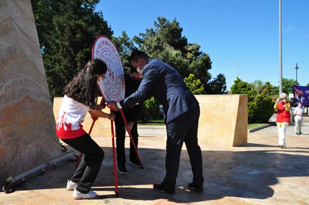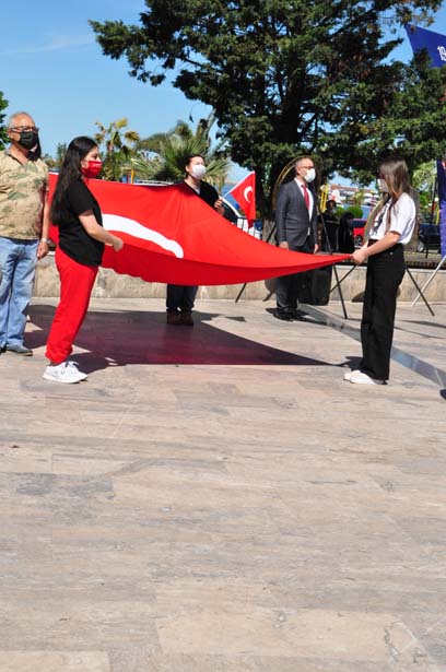Kademeli Normalleşme döneminde Koronavirüs tedbirleri alınarak düzenlenen törende öncelikle Gençlik Hizmetleri ve Spor İlçe Müdürü Serkan Keleş ve öğrenciler tarafından Atatürk Anıtı’na çelenk sunuldu.