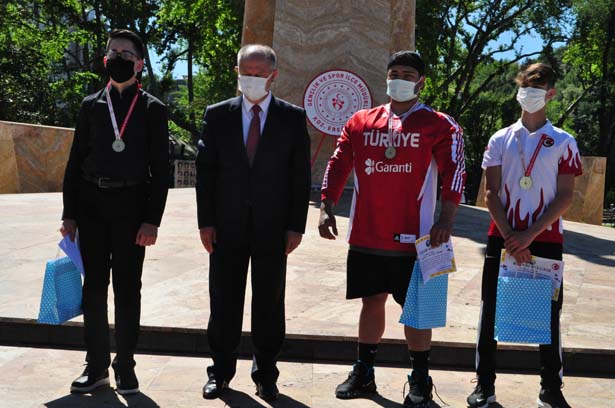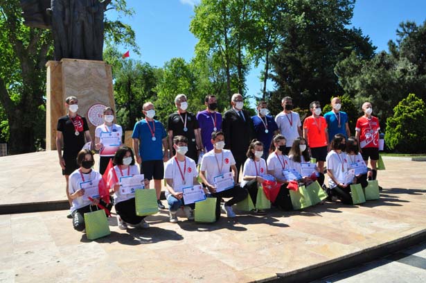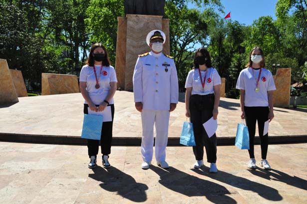 Atatürk Anıtı önünde gerçekleştirilen tören, 19 Mayıs Atatürk’ü Anma, Gençlik ve Spor Bayramı kapsamında düzenlenen ulusal ve yerel yarışmalarda dereceye giren öğrencilerin ödüllerinin takdim edilmesi ile devam etti.