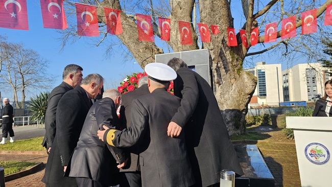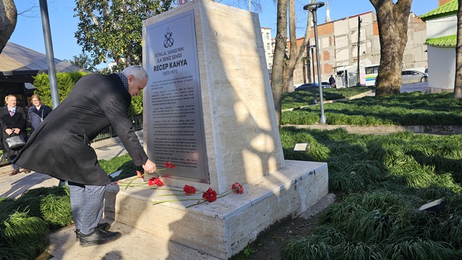 Daha sonra Devrim Bulvarı’ndaki İnönü Parkı’na ilk deniz şehidi Recep Kahya adına yapılan anıta protokol tarafından karanfil bırakıldı.