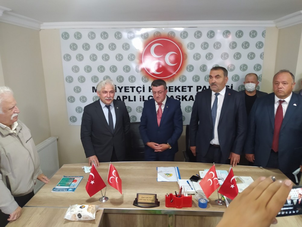 Milliyetçi Hareket Partisi (MHP) Alaplı İlçe Başkanı Erol Oktay, bugün ilçe binasında gerçekleşen toplu üye katılımında rozet takma töreni gerçekleştirdi. Törende Alaplı TSO eski Başkanı İİsmail Öztürk ve 105 kişiye toplu rozet takılarak partiye geçtiler.