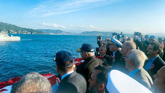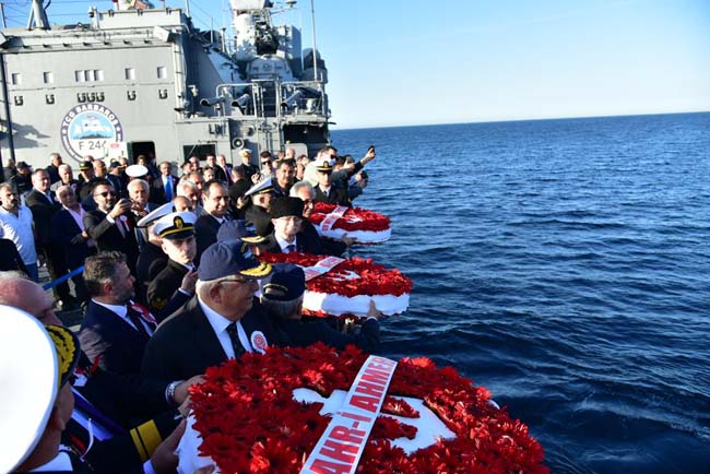 Plaket takdiminin ardından törenin son bulmasıyla protokol üyeleri, askeri gemiyle denize açılarak Bezm-i Alem, Bahr-i Ahmer ve Mithat Paşa nakliye gemilerinin battığı noktada denize üç adet çelenk bıraktı.