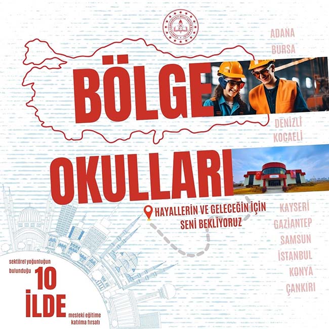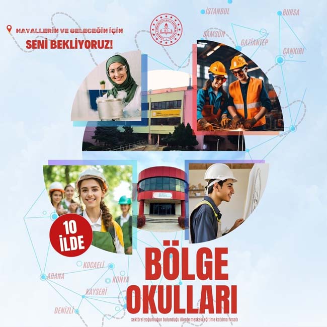 Milli Eğitim Bakanlığı, öğrencilerin sanayisi gelişmiş bölgelerde barınma imkanı ve sektör iş birliğiyle eğitim almaları için 10 ilde 11 mesleki ve teknik eğitim lisesini “bölge okulu” kapsamına aldı.