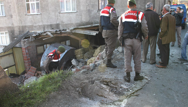 sürüklenerek yaklaşık 1 metre yükseklikte istinat duvarını yıktıktan sonra