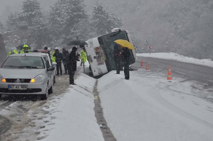 Araçta bulunan yolcular otobüsün sol bölümündeki kırılan camlardan çıktılar. Yolcular, başka bir araçla bölgeden ayrıldı. Kazadan yara almadan kurtulan yolculardan uzun yol şoförü Ömer Saraç ise, "Sabah saat 04.00 sıralarında Kozlu terminalinden otobüse bindim. Ilıksu'yu geçtikten sonra araba karda kaydı. Ondan sonra arabadan çıktık. 11 kişiydik. İstanbul'a gidiyorduk. Virajı geçtikten sonra araba yan yattı. Cam kırıldı. Camdan dışarıya çıktık, çok şükür atlattık" dedi.