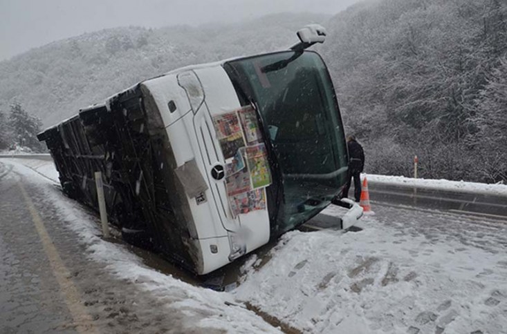 Zonguldak'tan İstanbul'a gitmek için yola çıkan şehirlerarası otobüs, 11 yolcusuyla yan yattı.
