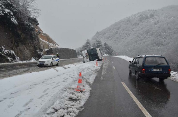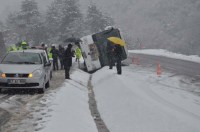 yolun da kaygan olması sebebiyle direksiyon hakimiyeti kaybedilen otobüs, orta