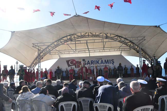 1.Dünya Savaşı devam ederken, İstanbul’dan hareket ederek Kafkas Cephesi’ne yardım götüren ancak 7 Kasım 1914 sabahı Ereğli açıklarında Rus Savaş gemilerince batırılan Bezm-i Alem, Bahr-i Ahmer ve Mithat Paşa gemilerinde şehit olan ve tarihe Sarıkamış Deniz Şehitleri olarak geçen 221 şehit için Kdz. Ereğli Belediyesi tarafından sahil bandında yaptırılan ‘Sarıkamış Deniz Şehitleri Anıtı’nda 110’uncu yılında anma töreni düzenlendi.