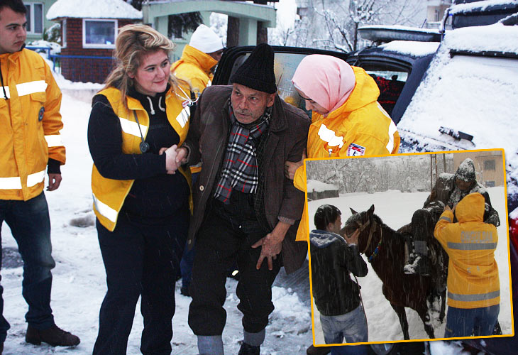 Zonguldak'ta yoğun kar yağışı nedeniyle hastaneye gidemeyen ve de kısa süre önce geçirdiği kazada bacağı kırılan diyaliz hastası için 112 sağlık ekipleri seferber oldu. Bölgede yer yer kar kalınlığının 1,5 metreye çıkması nedeniyle yolu kapanan mevkiden bacağı kırık diyaliz hastası, oğlu tarafından at sırtında getirilmesi dikkat çekti.