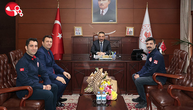 Zonguldak Valisi Osman Hacıbektaşoğlu, 112 Acil Çağrı Merkezi Müdürü Cemal Kar ve kurum temsilcilerini makamında temsil etti.