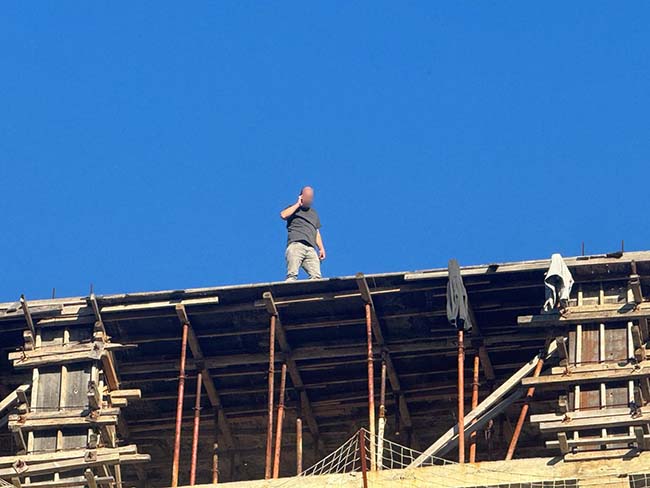 İnşaatın çatısına çıkan şahıs "Zonguldak Belediye Başkanı buraya gelecek" diye bağırdı.