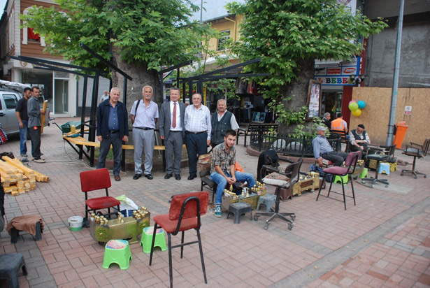 Çaycuma'da ayakkabı boyacıları için Çaycuma Belediyesi tarafından modern görünümlü lostra yapıldı.