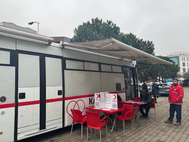 Otobüste yoğunluk yaşanması üzerine yakınındaki bina da kan bağışı için tahsis edildi.