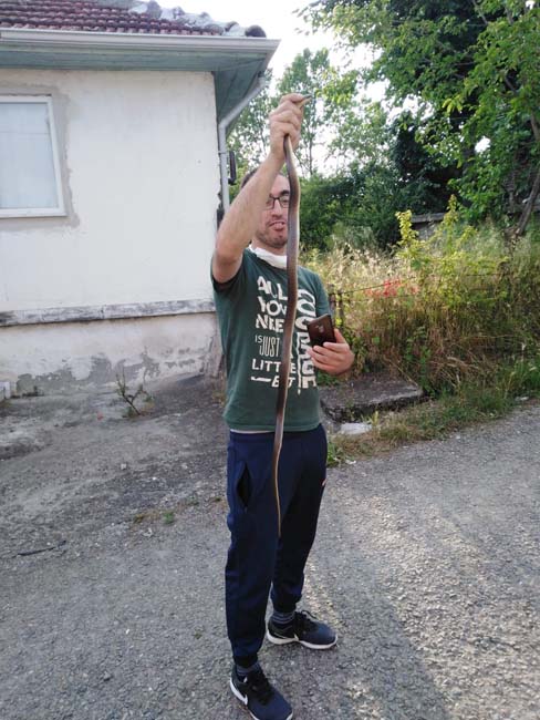 Zonguldak Alaplı İlçesi Çengelli Köyünde yaşayan aynı zamanda Alaplı Belediyesinde İtfaiye eri olan Çetin Güneri evinin yanında kümes içinde beslediği tavukların yumurtalara yakın bir yerde yılan fark etti. Yılanı elleriyle yakalanan Güneri, sosyal medya hesabından paylaşım yaptı. Çetin Güneri, canlıya zarar vermediğini de paylaşımının altına ekledi.