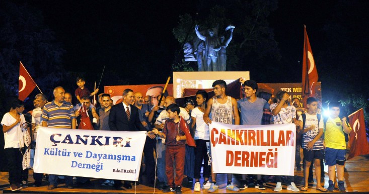 15 Temmuz darbe girişiminin ardından Kdz. Ereğli'deki demokrasi nöbeti sürüyor. Nöbetin 16.gecesi yine Atatürk Anıtı önünde buluşan Ereğli halkı demokrasiye sahip çıkma adına meydanı boş bırakmıyor.
