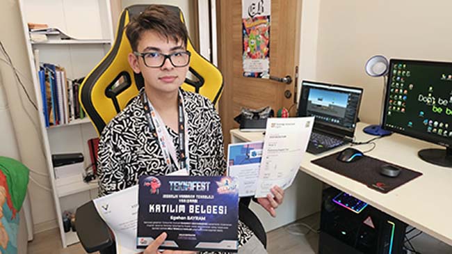 "Bu işlere çok küçük yaşlardan itibaren başladım. Hayatımda buna dair birçok başarı var. Aslında bu benim hobime dönüştü. İlerleyen yaşlarımda da yapay zeka mühendisi olarak hayatımı sürdürmek istiyorum. Yurt dışında MIT üniversitesinde okumayı hedefliyorum. Katıldığım senedeki turnuvada 'ayda nasıl yaşam sürdürülebilir' konusu vardı. Buna dair bizden çalışma istediler. En iyi anlatıcı ödülünü aldık. Hocalarımın yönlendirmesiyle birlikte kendimi geliştirmeye devam ettim. 6-7. sınıfta matematikten dünya birinciliği elde ettim. Biyolojiden de ikincilik derecesi elde ettim. Bu sınavlar Rusya bazlı sınavdı. 2022'de Teknofest yarışmasında insanlık yararına teknoloji kategorisinden kırkıncı oldum. Bu senede TÜBİTAK bölge finallerine kaldım. Orada da altıncılık elde ettim. Şu anki yaptığım çalışma Apple'in vision projesinin demosunu evde kendim geliştirdim. Yaparken görüntü işleme algoritmalarını kullandım. Hayatımıza nasıl bir katkı sağlayacak diye soracak olursak; bir kamera ile örneğin yemek yaparken taktığımız gözlükle video açıp izleyebiliriz. Yemek tariflerini izleyebiliriz. Hayatımızı kolaylaştıracak bir teknoloji. Şu anda yaptığım bir demo. İlerleyen zamanlarda çok daha değişik çok daha iyi teknolojilerin çıkacağına inanıyorum. Gözlük sayesinde uzak yerlerin ekrana yansıtılabileceğine dikkat çeken Bayram, "Gözlük sayesinde uzak yerlere gitmemize imkan sağlıyor. Örneğin ben Mars'ı ekledim. Dekorasyon da yapabilirsiniz evinizi sanal olarak dekore de edebilirsiniz. Görüntü işleme algoritmalarıyla elimizi algılıyor. Bilgisayar aracılığıyla esas oyunu yaptığım sisteme götürüyor. Elimle birlikte komut verebiliyorum. Bilgisayarla temasa gerek kalmıyor. Bundan sonra hedef olarak yurt dışında üniversite okumak istiyorum. Yapay zeka günümüzde çok önemli bir konumda. İleride de önemi daha da artacak. Şu an başlangıç aşamasında. İleride insanlara bir otomasyon sistemi sağlanacak" dedi.