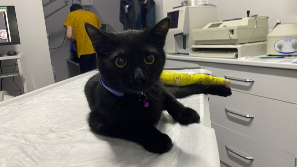 Olay geçen hafta sonu yaşandı. 1,5 yaşındaki smokin cinsi kedi, 8.kattan düşerek ağır yaralandı. Düşmenin etkisiyle kedinin sol ayak kemiğinde kırık meydana geldi. Kedinin düştüğünü gören sahipler veteriner kliniğine getirdi. Veteriner hekim Gökmen Koç tarafından röntgeni çekilen kedinin sol ayak kemiğinde kırık olduğu tespit edildi. Ardından hemen ameliyata alınan kedinin, ameliyatı başarılı geçti. Tedavisinin tamamlanmasının ardından teslim edilecek.