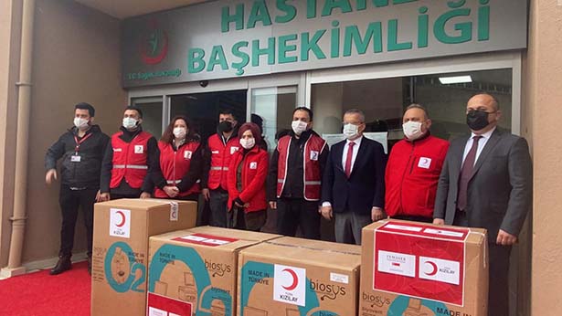 Türk Kızılay Zonguldak Şubesi, yeni tip korona virüsle mücadele kapsamında Atatürk Devlet Hastanesi'ne iki adet solunum cihazı hibesinde bulundu. Hastane Başhekimi Hasan Tosun ile İl Sağlık Müdürü Dr. Ertuğrul Güner de programa katıldı. Kentteki sağlık kuruluşlarına koruyucu malzemelerin hibesinin yanı sıra iki adet solunum cihazı desteği verdiklerini söyleyen Türk Kızılay Zonguldak Şube Başkanı Aydın Ergenç, sağlık çalışanlarına katkılarının devam edeceğini söyleyerek; "Türk Kızılay olarak bugünde Atatürk Devlet Hastanesindeyiz. Sağlıkçılarımız bizim kahramanlarımız. Biz onların yanında olacağımızı söylemiştik, olmayanda devam edeceğiz. Şimdide iki adet solunum cihazını hastanemize bağışlıyoruz" ifadesine yer verdi.