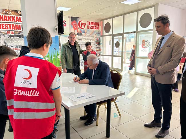 Türk Kızılayı Kdz.Ereğli Şubesi yetkilileri kan bağışı sonunda, Kdz Ereğli 15 Temmuz Şehitler Ortaokulu’nda öncelikle gönüllü öğrenciler, öğretmenler, veliler olmak üzere tüm bağışçılarımıza hasta ve hasta yakınları adına teşekkür ettiler.