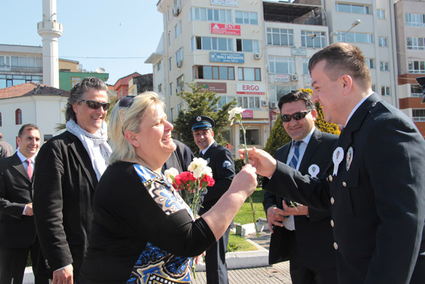 yapan polislere karanfil takdim ederek, Polis Haftalarını kutladılar.