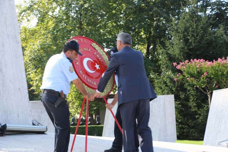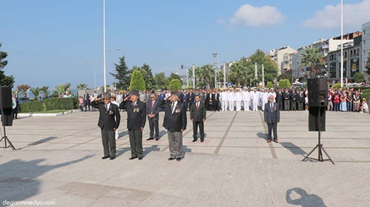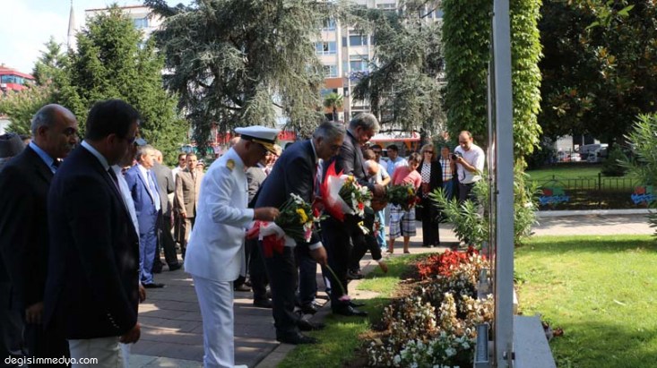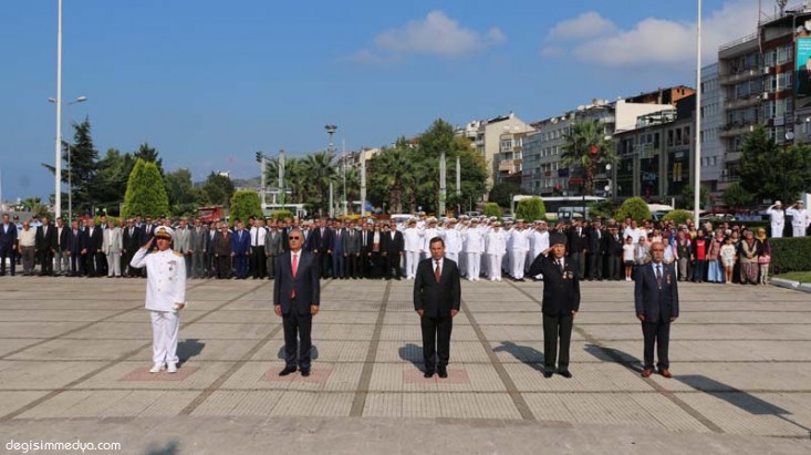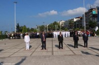 Atatürk Anıtına Kdz. Ereğli Kaymakamı Nazım Madenoğlu, Karadeniz Bölge ve Garnizon Komutanı Tuğamiral Hasan Doğan , Belediye Başkanı Opr. Dr. Hüseyin Uysal, Muharip Gaziler Derneği Başkanı Temel Şahin, Türkiye Harp Malulü, Gazi Şehit Dul Yetimleri Derneği Ereğli Şube Başkanı Mehmet Ali Demirdüven'in Atatürk Anıtına çelenk sunumuyla başladı