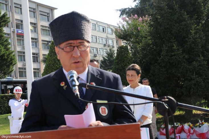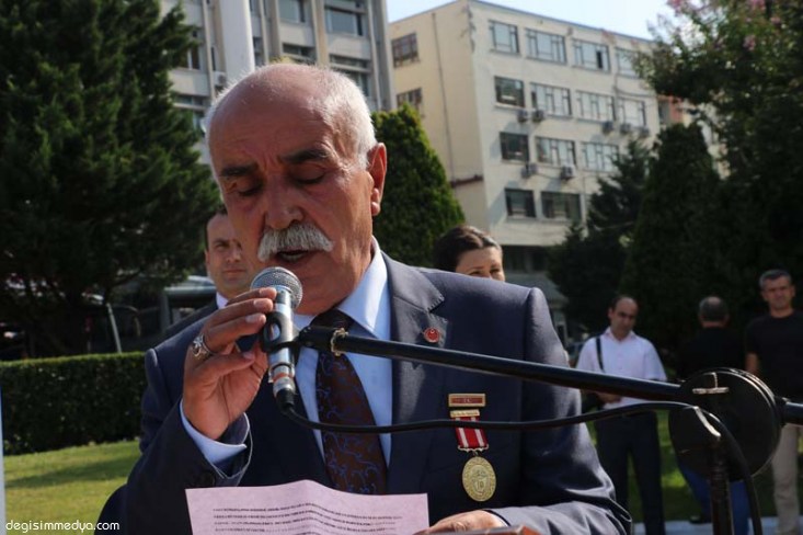 devam eden tören, Muharip Gaziler Derneği Başkanı Temel Şahin'in günün anlam ve