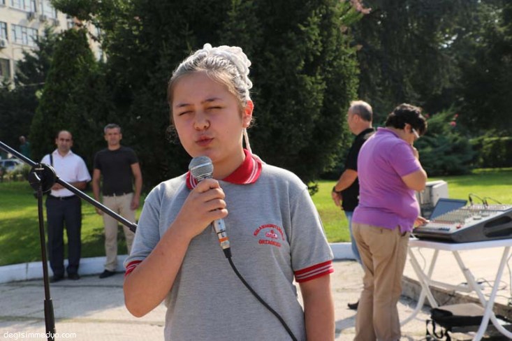 Kışla Mahmut Likoğlu Ortaokulu öğrencilerinden Büşra Akkaya'nın duygu dolu okuduğu 'Gazimize' adlı şiirini okumasıyla tören sona erdi.