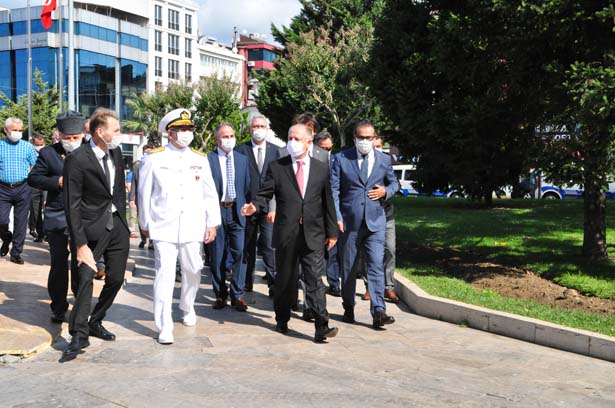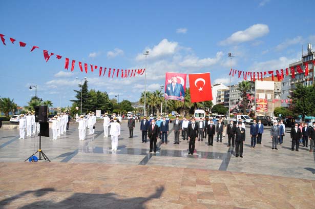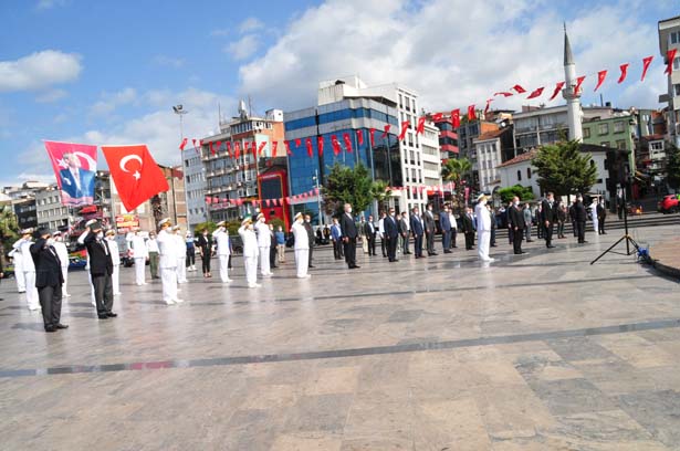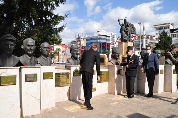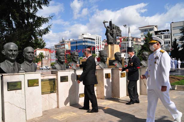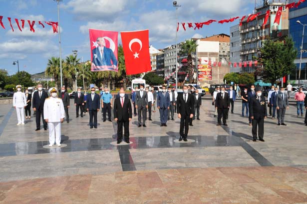 Devrim Bulvarı Atatürk Anıtı önünde gerçekleştirilen törene; Karadeniz Ereğli Kaymakamı İsmail Çorumluoğlu, CHP Zonguldak Milletvekili Ünal Demirtaş, Karadeniz Bölge ve Garnizon Komutanı Tuğamiral Taner Gün, Karadeniz Ereğli Belediye Başkan Vekili Tarkan Atik, Türkiye Muharip Gaziler Derneği Karadeniz Ereğli Şube Başkanı Temel Şahin, siyasi parti temsilcileri, daire müdürleri ile askeri ve sivil erkan katıldı.