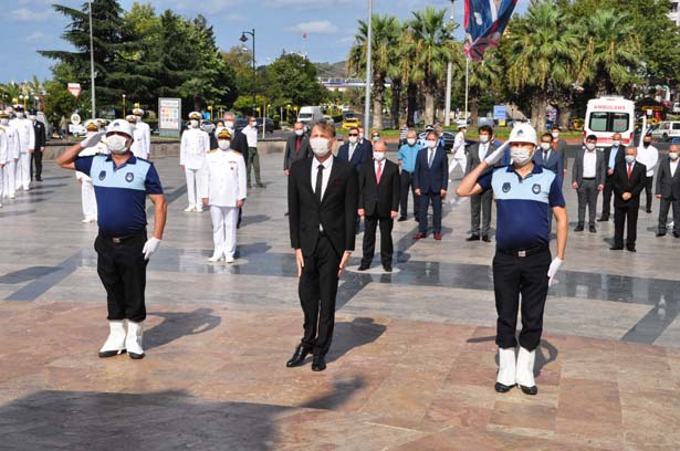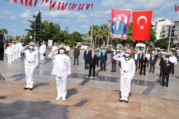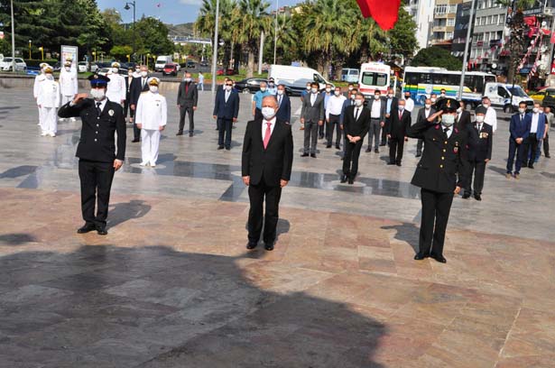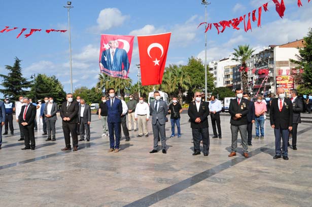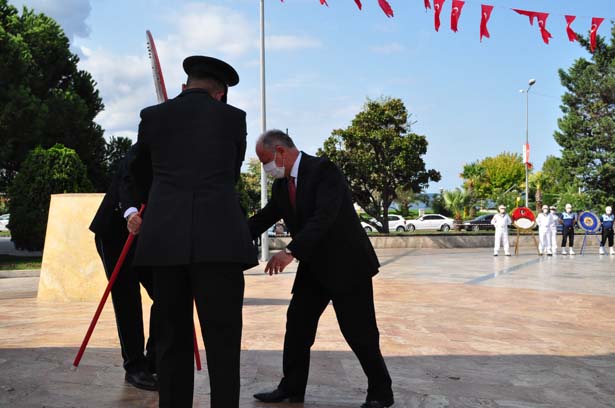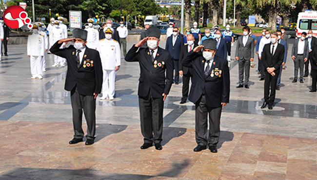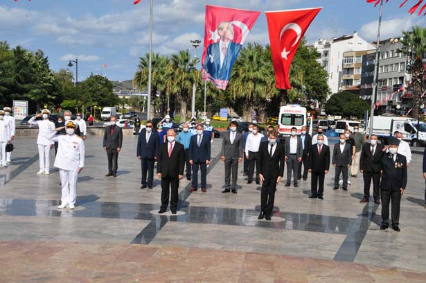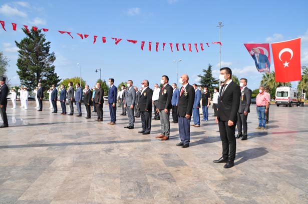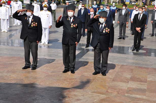 COVİD 19 tedbirleri nedeniyle kısıtlı sayıda gazi ile gerçekleştirilen törende çelenklerin sunulmasının ardından saygı duruşunda bulunuldu, İstiklal Marşı okundu.