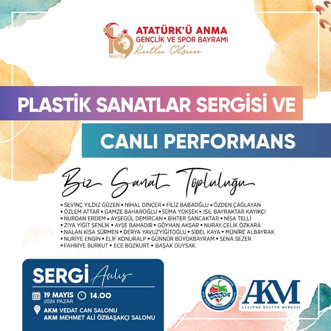 Kdz. Ereğli Belediyesi tarafından 19 Mayıs Atatürk’ü Anma Gençlik ve Spor Bayramı’nda Atatürk Kültür Merkezi’nde (AKM) Litografiden Pentüre, Plastik Sanatlar Sergisi, Canlı Performans ve Fotoğraf Gösterisi, Yaratıcı Görme semineri düzenlenecek.