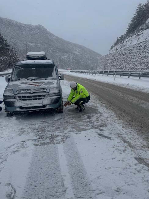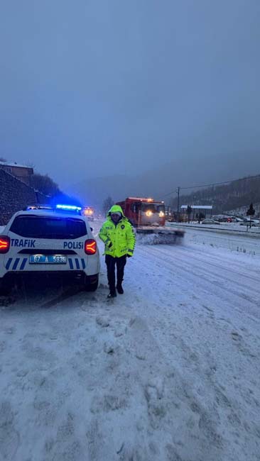 Yetkililer, sürücüleri kar lastiği olmadan yola çıkmamaları, trafik işaret ve işaretçilerine uymaları ve zorunlu olmadıkça özel araçlarını kullanmamaları konusunda uyardı.