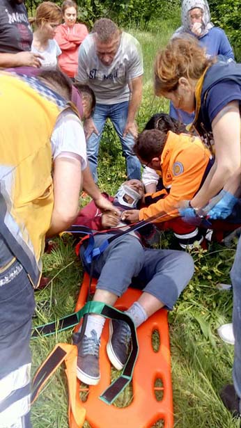 Acil Serviste tedavisine başlanan yaşlı adamın MR ve röntgenleri çekildi. Babasının bulunması ile ilgili olarak gazetecilere açıklamada bulunan Feti Sarı, AFAD, Polis, İtfaiye ekipleri ve gazetecilere teşekkür etti. Babasının iki gün boyunca ot yiyerek hayata tutunduğunu anlatan Feti Sarı " AFAD ekibi dünden beridir arıyordu. Sabah geldiler.Bizim evin 300 metre ilerisinde ki fındıklık alan vardı. Fındıklığın dibine oturmuş. Artık düştü mü kendi isteği ile mi oturdu. Oturur vaziyette buldular. Sağlık durumunda herhangi bir sıkıntı yok. 2 gündür aç susuz olduğu için biraz bitkinliği var. Orada çoban ekmeği diye hitap ettiğimiz bir ot var. Onu da babam eski insan olduğu için biliyor. Onu yemiş. İçecek bir şey yok. O otu yiyerek kendini avutmuş" dedi.