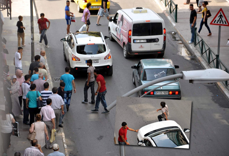 arabalarından harçlık isteyen gençler, diz çöküp yolda bekledi. Aracın